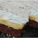 Abwechselnd, oder klecksweise, Schoko-und Vanillepudding darüber geben – evtl. etwas marmorieren.