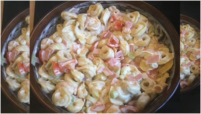 dann die Gemüse schnippel und Tortellini in eine Schüssel und die mayo Mischung drunter mischen
