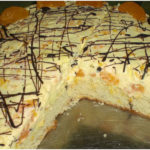 Eiweiß und 50 g Zucker sehr steif schlagen und diese Baisermasse wellenförmig auf dem Kuchen verteilen. Bei gleicher Temperatur ca. 10 Minuten weiterbacken.