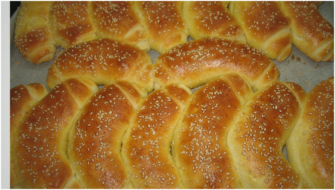 Die Teigrollen auf das Backblech legen und im vorgeheizten Backofen bei 200° C für ca. 20-25 Minuten fertig backen.