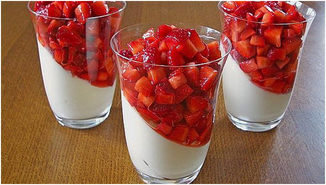Gläser zur Hälfte damit füllen und gut 2 Stunden kalt ziehen lassen.