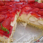 Danach die Erdbeeren in Stücke schneiden, zuckern nach Belieben und auf die Creme geben.