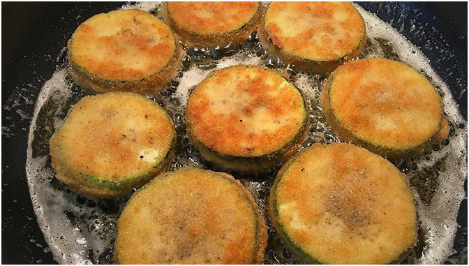 Dieses Rezept ist so simpel und dabei so lecker: Zucchini (idealerweise hat er einen Durchmesser von mindestens 10 cm) in ca. 5 mm dicke Scheiben schneiden. Zwischen jeweils 2 Scheiben Zucchini je eine Scheibe Schinken und eine Scheibe Käse legen. Ich steche Schinken und Käse immer mit einem großen runden Ausstecher aus, aber das muss nicht sein. Hauptsache, es steht nicht allzu viel über. Man muss nicht mit einem Zahnstocher o.Ä. fixieren, die Scheiben halten auch so gut zusammen. Dann die fertig gestellten Cordon bleus mit wenig Salz und Pfeffer würzen und panieren. Erst in Mehl, dann in verquirltem Ei und zuletzt in Semmelbröseln wenden. Das Butterschmalz in einer Pfanne erhitzen und die Zucchini-Cordon bleus von beiden Seiten knusprig goldbraun ausbacken.